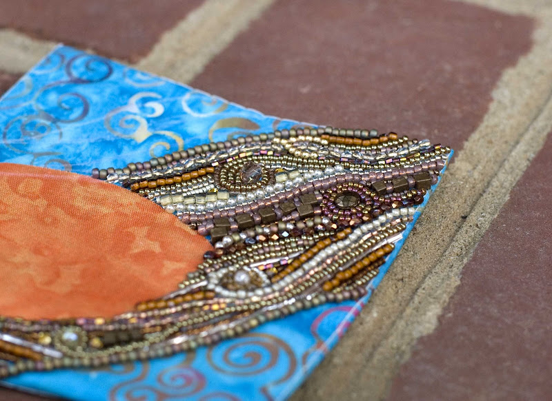 The beading looks great, Susan. To me it's the orange that isn't quite right...too much maybe? Oh, I wish you didn't live so far away...the local quilt/bead store has a trunk show of fabulous stuff!